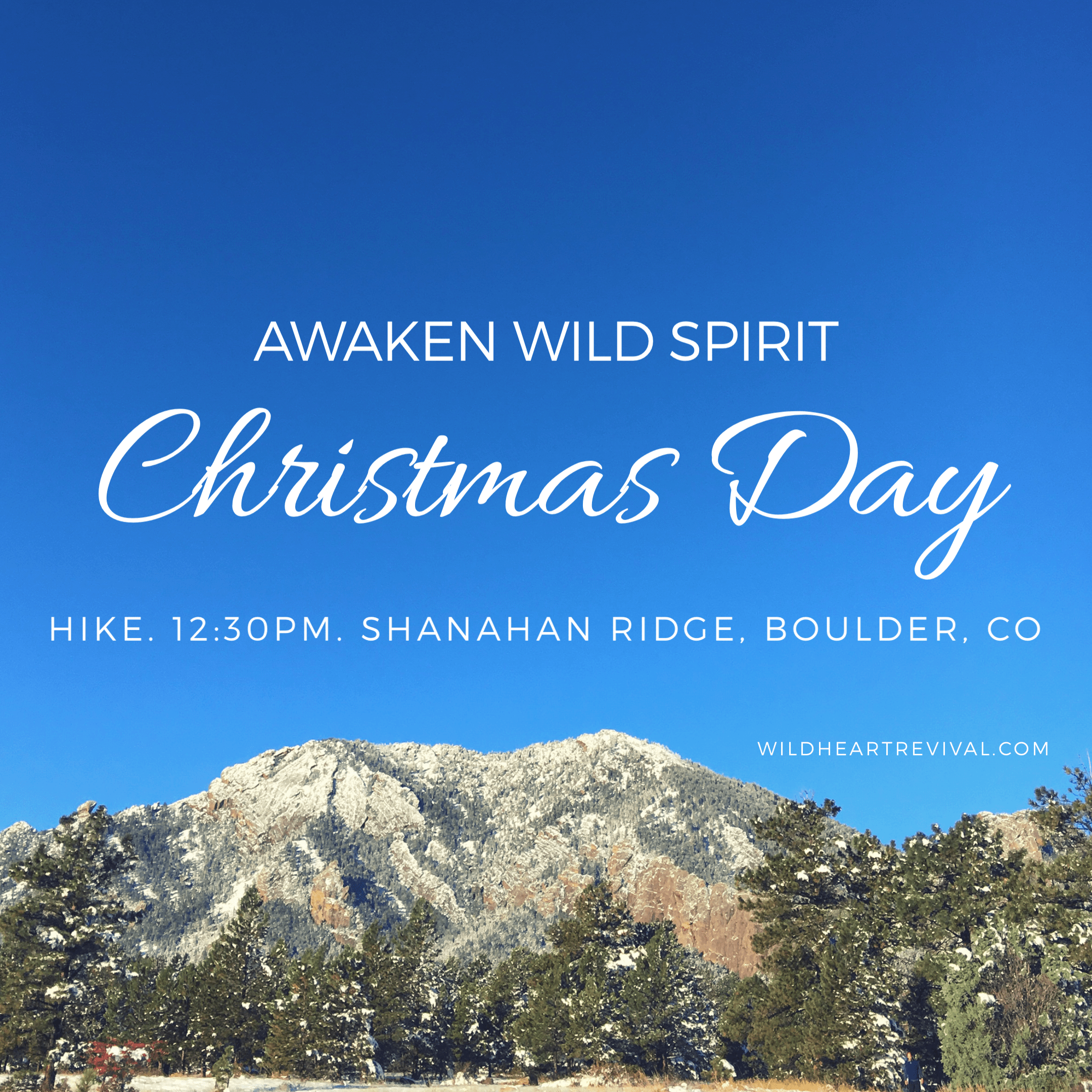 Awaken Wild Spirit this Christmas Day as we hike 4 miles roundtrip and touch a Flatiron. 12:30-2:30pm. Shanahan Ridge. Dress in layers. Be prepared for snow on the ground. Bring a warm beverage for yourself and bite-sized morsels to share. RSVP here.